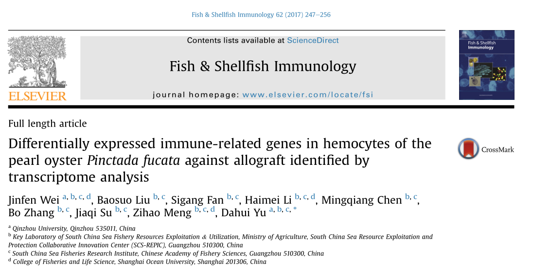 05月03 【成功案例】百邁客云助力喻達輝老師 使用 真核生物有參考基因組的轉錄組分析平臺 輔助研究,發(fā)表《通過轉錄組分析合浦珠母貝對異體血細胞免疫表達相關基因》