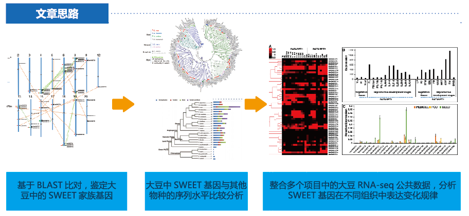 大豆研究套餐: 整個(gè)多個(gè)大豆RNA-seq公共數(shù)據(jù),分析SWEET基因家族在大豆生殖組織與營(yíng)養(yǎng)組織間表達(dá)變化規(guī)律
