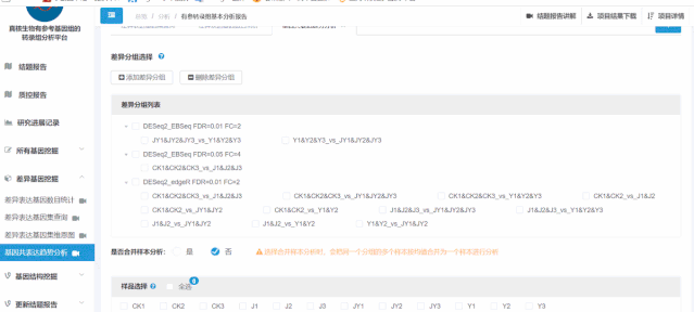 DEseq2軟件適用于有生物學(xué)重復(fù)的項(xiàng)目,edgeR適用于無生物學(xué)重復(fù)的項(xiàng)目,選擇第一個(gè),系統(tǒng)會(huì)自動(dòng)識(shí)別項(xiàng)目類型選擇對(duì)應(yīng)的軟件