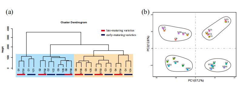研究對(duì)象:兩個(gè)早熟品種,兩個(gè)晚熟品種;每個(gè)品種6個(gè)時(shí)期