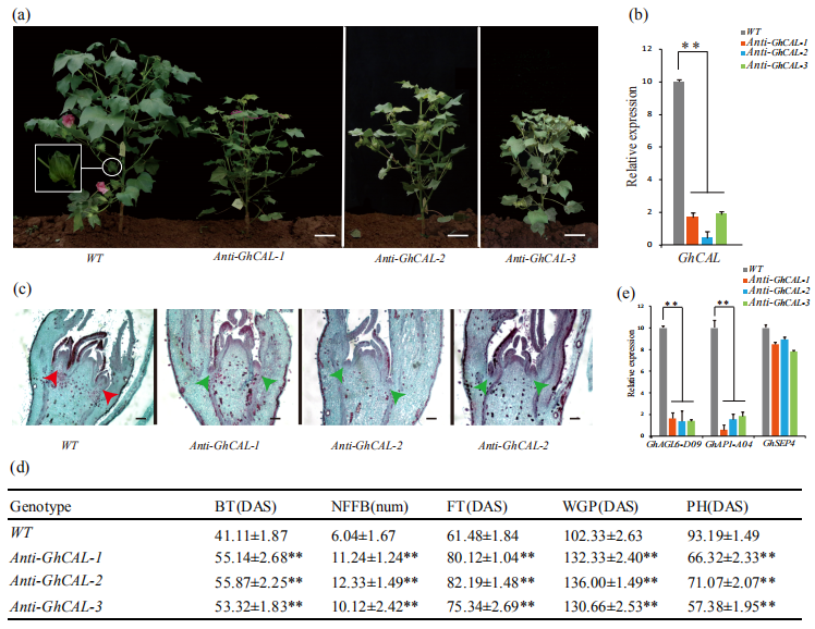 5、GhCAL在調(diào)節(jié)從營養(yǎng)生長到生殖生長的轉(zhuǎn)換的功能驗(yàn)證