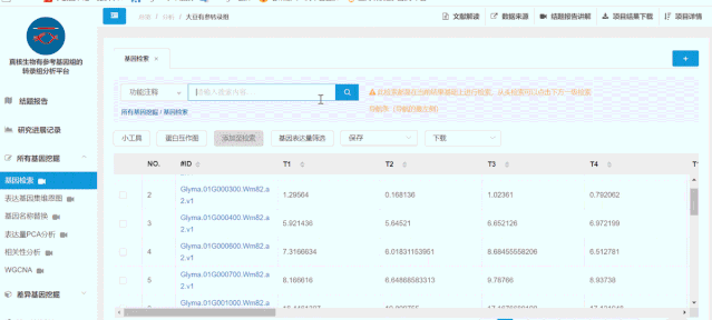 報(bào)告查看,點(diǎn)擊項(xiàng)目(管理)?->?我的項(xiàng)目打開項(xiàng)目列表,找到之前提交任務(wù)時(shí)選擇的項(xiàng)目,點(diǎn)擊項(xiàng)目名稱打開該項(xiàng)目,即可看到新生成的分析報(bào)告記錄,點(diǎn)擊報(bào)告名稱查看詳細(xì)報(bào)告。