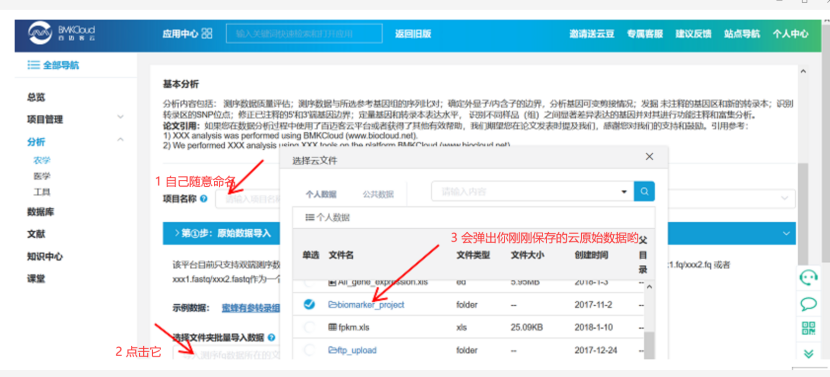 針對(duì)FASTQ測(cè)序數(shù)據(jù),選擇文件夾批量導(dǎo)入,雙端測(cè)序數(shù)據(jù)必須分別以_1.fq和_2.fq結(jié)尾,系統(tǒng)便會(huì)自動(dòng)對(duì)數(shù)據(jù)進(jìn)行配對(duì),而且多個(gè)目錄中的文件可以分多次導(dǎo)入進(jìn)來一起進(jìn)行分析。(在本公司進(jìn)行測(cè)序的數(shù)據(jù)會(huì)自動(dòng)推送到您的賬戶下,數(shù)據(jù)所在文件夾名稱為合同編號(hào))