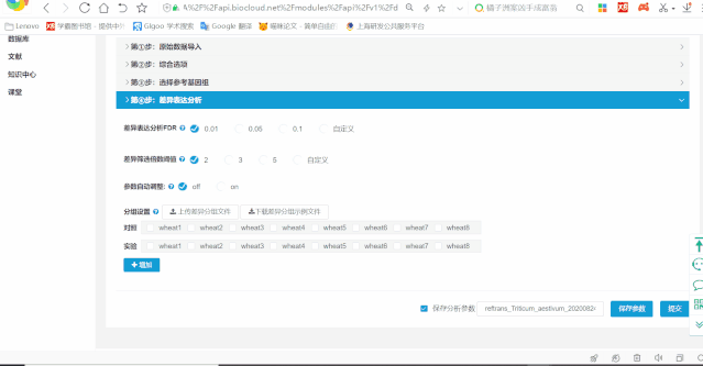 根據(jù)實(shí)驗(yàn)方案設(shè)計(jì)以及樣品信息,進(jìn)行分組的設(shè)置,流程據(jù)此進(jìn)行差異比較分析,此處只支持兩組間比較,可添加多個(gè)差異分組。FDR值一般推薦選擇0.01,差異倍數(shù)閾值一般推薦選擇(此處的參數(shù)和差異分組在后期報(bào)告?zhèn)€性化中可再次進(jìn)行修改)